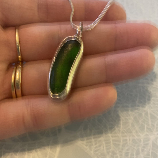 Sterling Silver Setting: The smooth, polished sterling silver setting enhances the natural beauty of the sea glass, creating a sleek, timeless design.